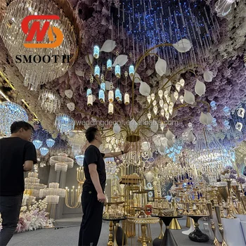 SMOOTH High-Class Crystal Centerpiece Wedding Round Circle with Crystal Bead Flower Stand Wedding Table Centerpiece