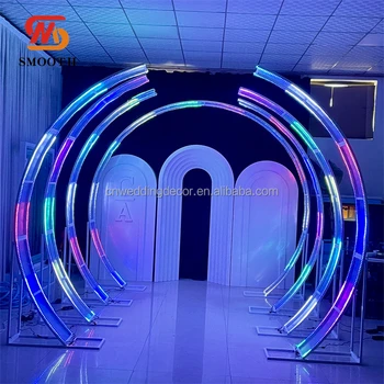 SMOOTH Wedding Stage White LED Light 3d Arch Wall White Acrylic Stand PVC Arch Backdrop Stand for Wedding Party